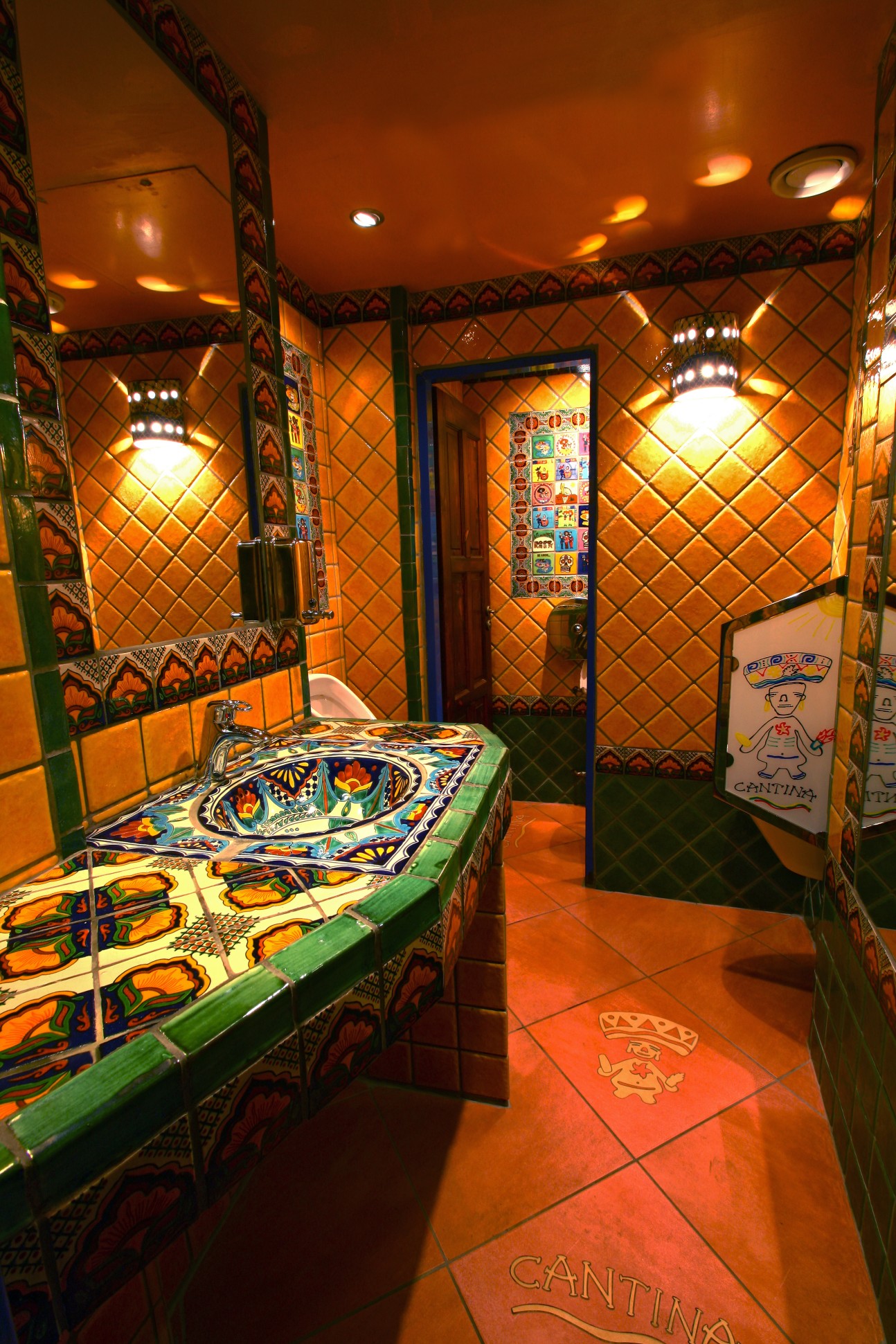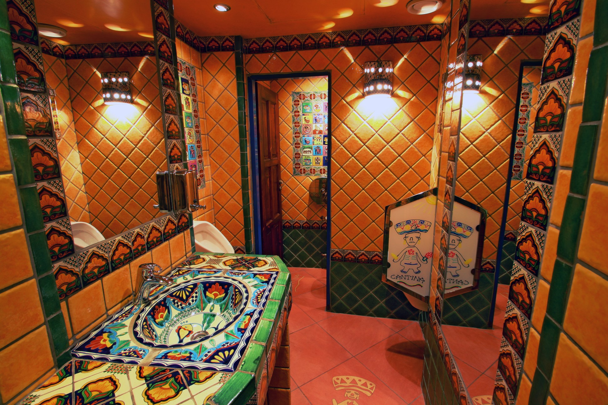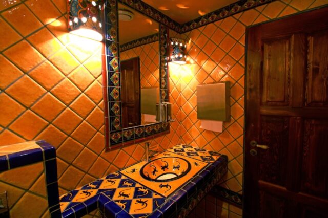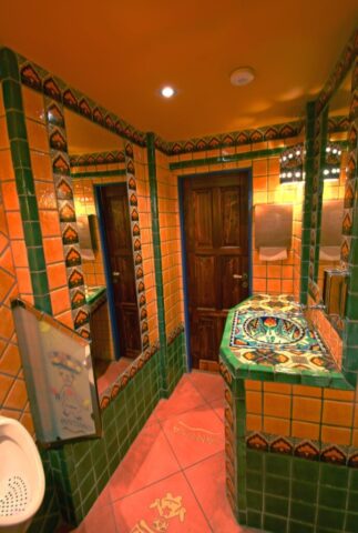 Byla to jedna z našich prvních realizací, a zrovna taková, kde se nedělaly kompromisy. Dnes je to již 15 let, a přesto toalety v mexickém stylu stále bezvadně slouží a jsou tím, co dodává dobrému jídlu ten pravý mexický šmrnc!