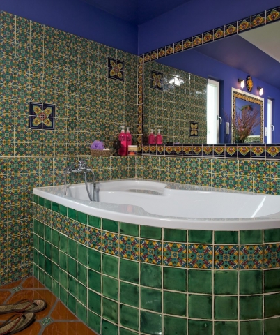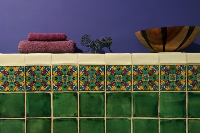 Zajímavou výzvou bylo řešení zděných nik, které měly být původně v prostoru u vany. Niky skýtaly možnost barevného odlišení a vnesení kontrastu do celistvé plochy, jakou vytváří dekor Arely Verde. Niky se nakonec nerealizovaly, ale díky nim vykrystalizovaly některé grafické náměty, které vedly až ke konečné verzi.