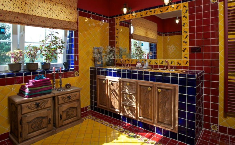 Tato koupelna přesvědčivě ukazuje, jak lze pomocí mexických obkladů a umyvadla oživit to nejlepší z koloniální estetiky. Dekor Vallarta odkazuje na atmosféru mexických přímořských měst – bohaté ornamenty, teplé žluté a terakotové tóny a ručně malované detaily vytvářejí dojem stability a tradice.